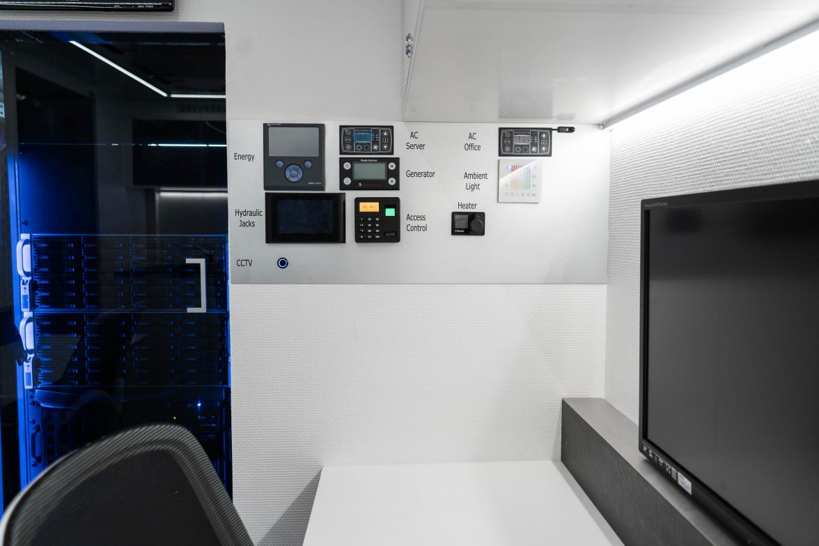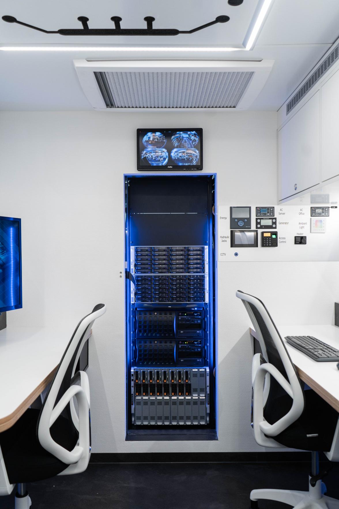 Our worldwide unique SwingRack protects the sensitive IT equipment even on bumpy roads.
