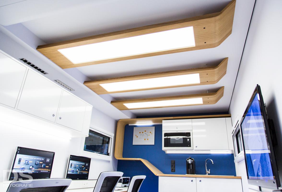 Generator, A/C and lighting can be operated via a central control desk at comfortable working height.