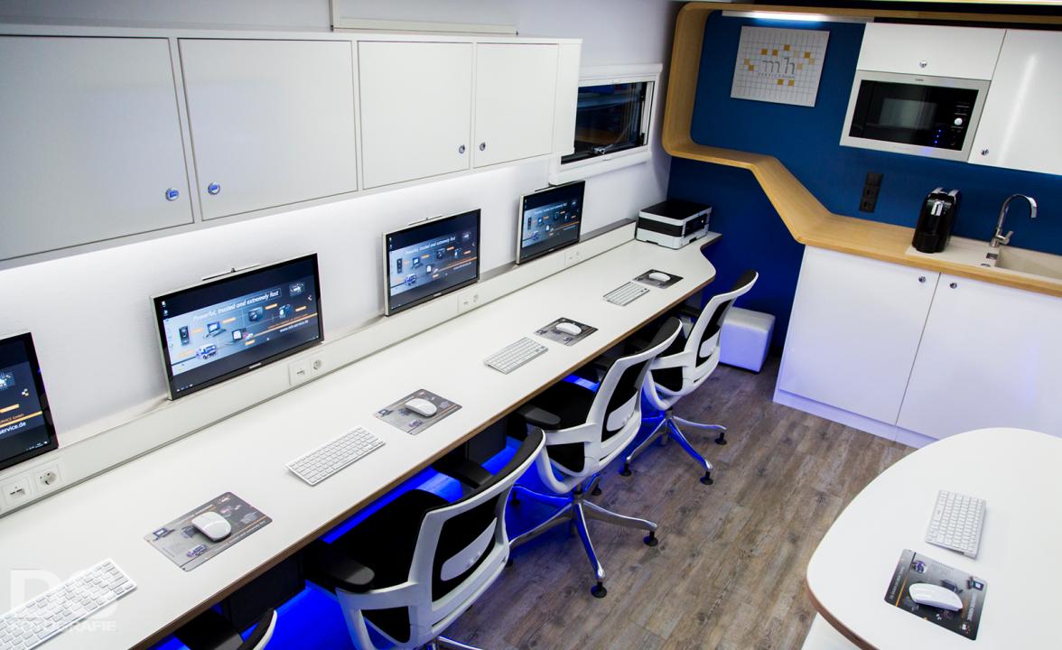 Not only working on wheels, but also without them: the LAB Cube is the only completly independent forensic laboratory, which comes in a high-end roll-off cube on a truck . The autonomous cube has its own electric generator and can be placed anywhere you need for your IT-fornsic investigations.