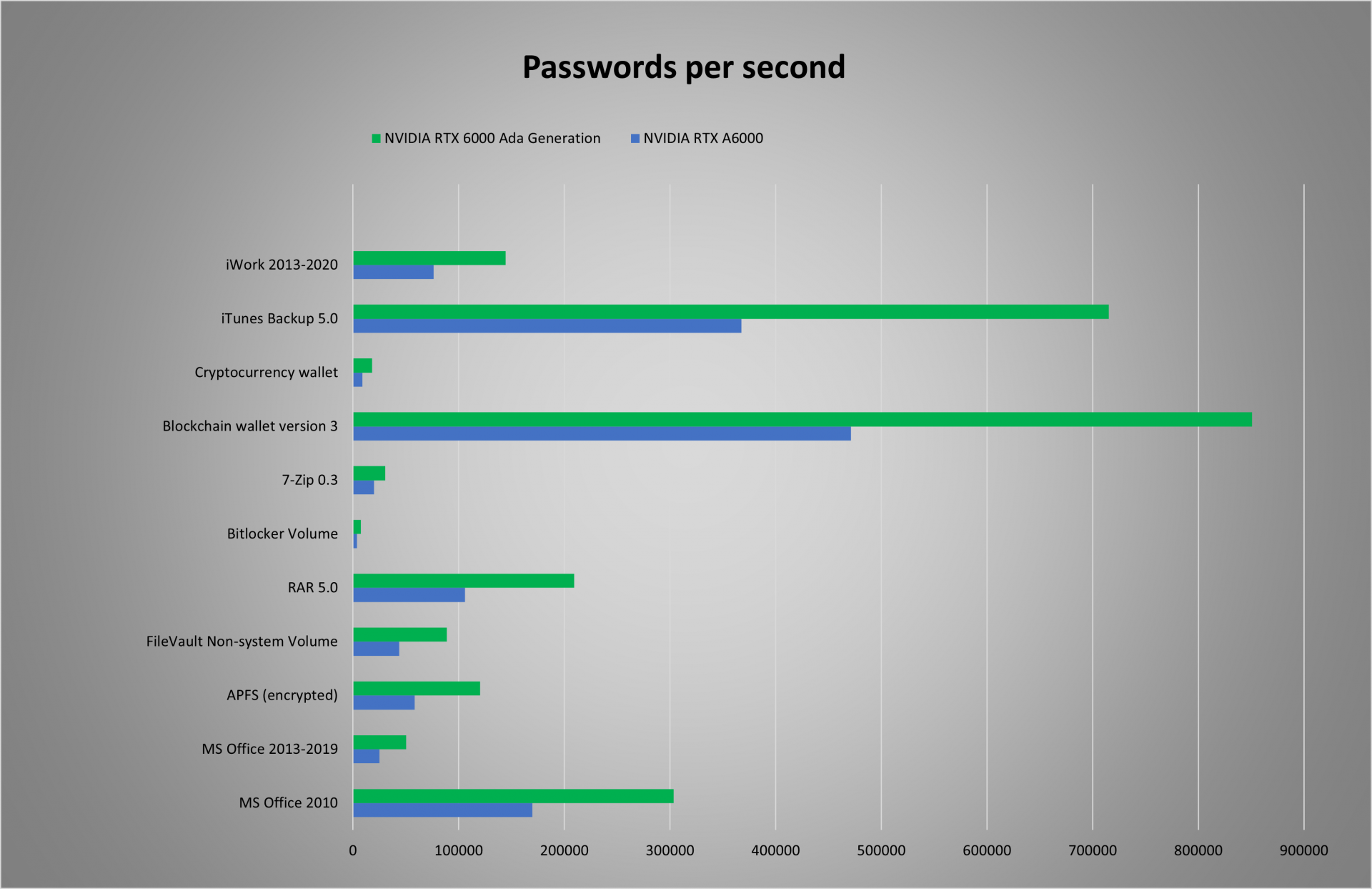 The OctaGraph is a Dual Xeon Server for specially developed for password acceleration. It is possible to combine several OctaGraphs together: Every additional graphic card/server doubles the number of calculated passwords per second!