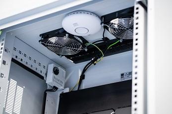Ventilation with quiet fans, temperature controlled with thermostat (setting range: +5 °C to +60 °C)