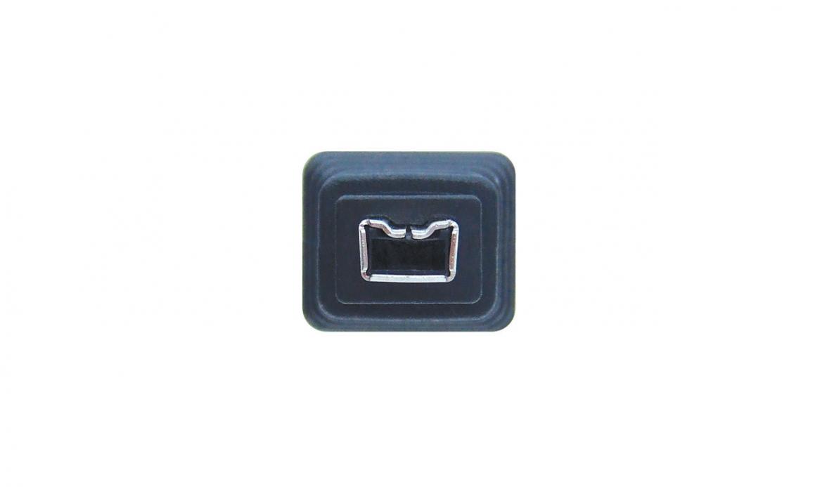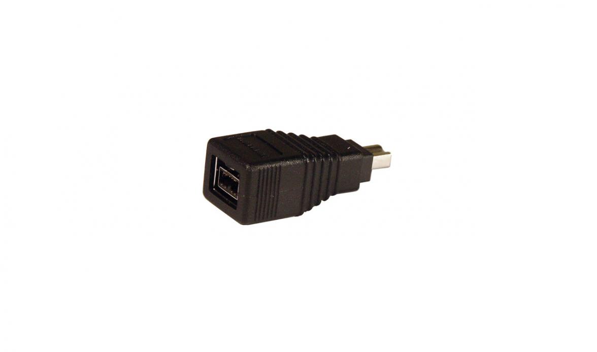 A compact FireWire cable adapter that is designed to plug into one end of the Tableau FireWire800 Cable to adapt the cable for use with 4-pin FireWire ports.