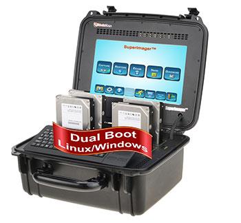SuperImager Plus 12" Rugged Forensic Field Unit mit 4 SAS/SATA-3, Thunderbolt 3.0 und 4 USB3.0/3.1 Ports. Es handelt sich um ein hochleistungsfähiges tragbares Forensik-Imaging-Tool und eine vollständige Plattform für forensische Computeruntersuchungen. Es ist mit Dual Open OS (Linux für schnelle Imaging/Win10 für forensische Analyse und Handy-Extraktion) konfiguriert, unter Linux kann der Benutzer mehrere gleichzeitige forensische Images erstellen (Mirror Image, einzelne Partition, Linux-DD, EnCase, Mix E01/DD, VHD, Triage mit Dateien und Ordnern) mit 3 HASH-Werten (MD5, SHA1 und SHA2 laufen alle drei gleichzeitig),