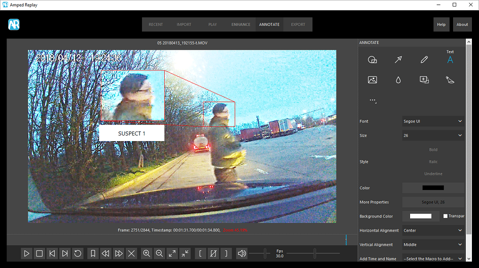 Amped Replay ist ein erweiterter Videoplayer mit dem Ermittler, Frontoffiziere, Ersthelfer, Sicherheitspersonal und CCTV-Betreiber eine schnelle Erstanalyse ihrer Videos mit einfachen Konvertierungs-, Schnellkorrektur-, Aufbereitungs- und Anmerkungsfunktionen durchführen und einen Bericht erstellen können. Dies ist ideal für die Fallerstellung und Offenlegung von Fällen. Amped Replay beinhaltet den leistungsstarken DVR-Videokonvertierungsmotor von Amped Software zum Ansehen von Videos, ohne Bedarf anderer nicht kompatibler, älterer oder proprietärer Player-Software. Dank der benutzerfreundlichen Bedienoberfläche sind keine fortgeschrittenen Kenntnisse erforderlich, um professionelle Ergebnisse bei der Präsentation von Beweismitteln zu erzielen, unabhängig davon, ob diese als Teil eines Falls verwendet, an eine andere Einheit oder an Geheimdienstanalysten weitergeleitet oder zur Identifizierung an Medien gesendet werden. Mit Amped Replay können Unternehmen sicher sein, dass Videos auf allen Ebenen mithilfe validierter forensischer Tools korrekt verarbeitet werden.
