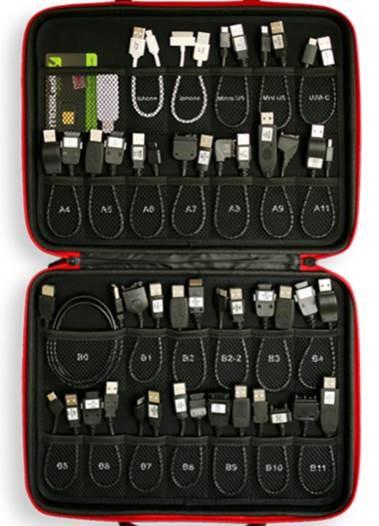 • Jedes Kabel ist durch seinen Typ und seine Position im Koffer erkennbar, so findet man schnell das richtige Kabel und die Ausstattung bleibt geordnet