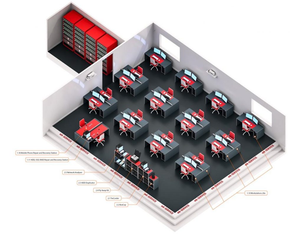 Durch eine genaue Kundenabstimmung können wir komplexe Labore konfigurieren und erstellen, einschließlich aller verfügbaren Lösungen für Mobilforensik, Datenrettung, zeitsparende Triage-Lösungen, Offline-Darknet-Analyse mit dem Einsatz von Workstations und Feldgeräten uvm. Sogar abgeschirmte Räumlichkeiten sind möglich.