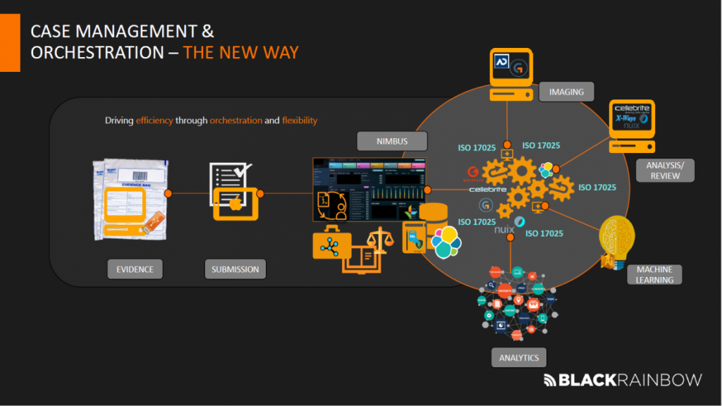 Nimbus ist eine Standard-Softwarelösung, welche aus Case Management, Reporting, Evidence Tracking, Technologie- und Workflow-Orchestrierung / Automatisierung sowie Qualitäts- und Auditmanagement besteht. Nimbus bietet zudem die Möglichkeit, Cross-Case Analytics auszuführen.