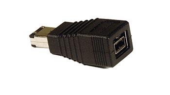 Ein kompakter FireWire-Kabeladapter, der an ein Ende des Tableau FireWire800-Kabels angeschlossen werden kann, um das Kabel für die Verwendung mit 6-Pin-FireWire-Anschlüssen anzupassen.